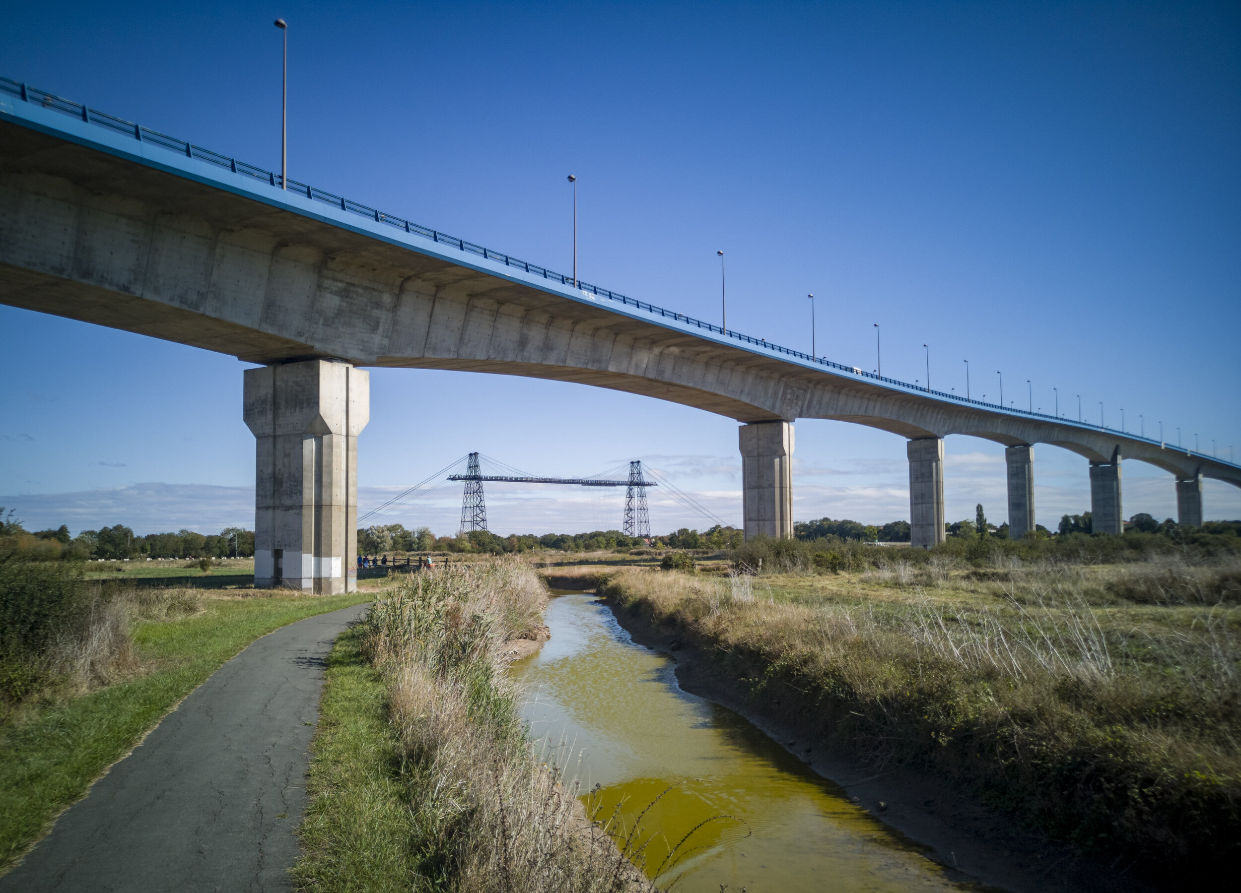We continued on our way, through an area of small canals that reminded me of the Somerset levels. Then in the distance loomed a massive arched road bridge. Our route took us safely over this and then to a rather older way of crossing the river, the recently renovated Transporter Bridge. Designed by French engineer Ferdinand Arnold in 1900, as a way to cross the river between Echillais and Rocheport without hindering the shipping. The gondola was clearly very popular today with walkers and cyclists. As we were on the right side already, we opted to sit in the sun and eat freshly made ice cream instead.