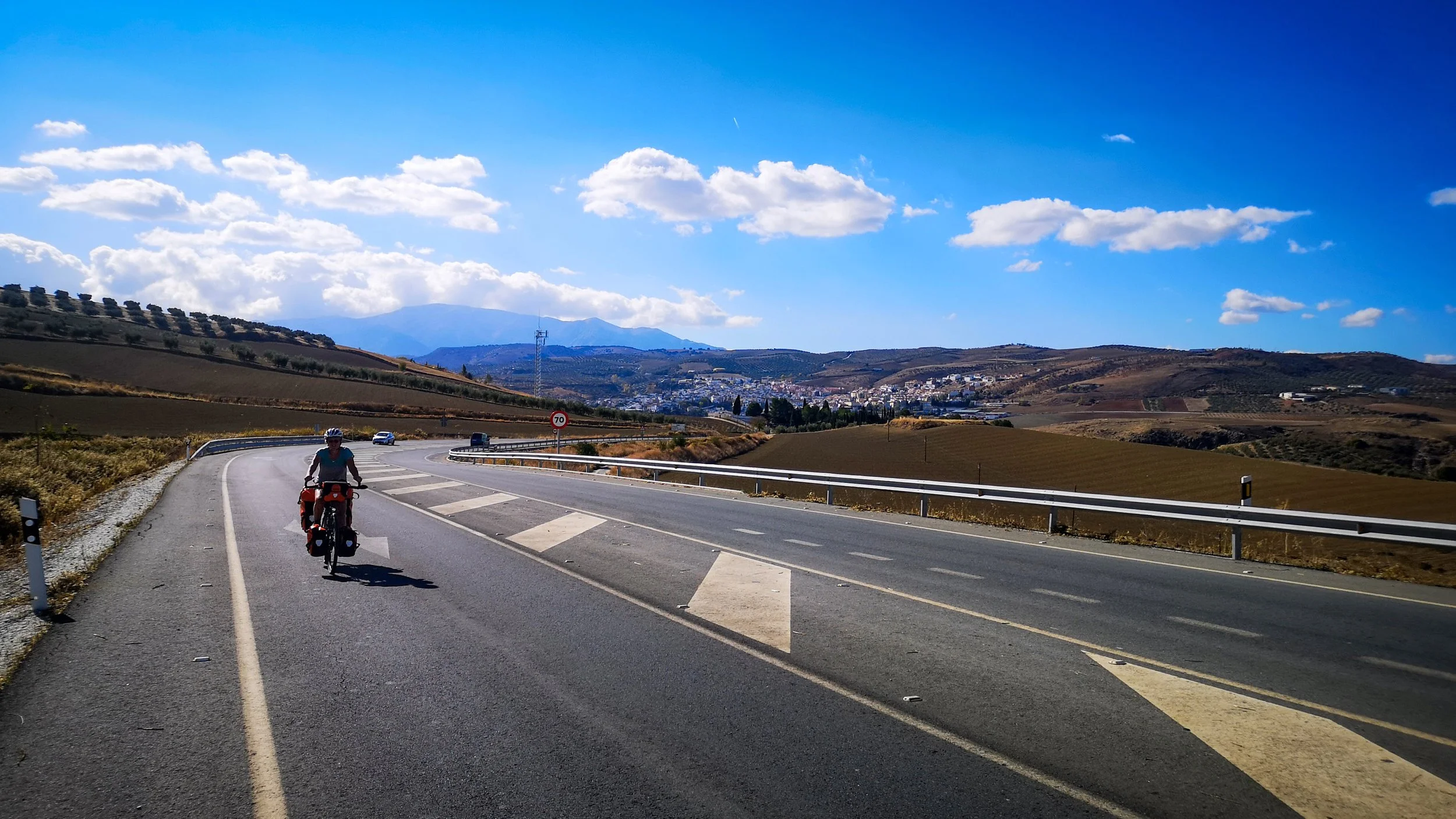 Back on the bikes, we rode on, up, down, up. We came to a junction. Granada was signed posted on the road we were leaving. Tom said no, our way was better. It was certainly a quiet road, but dear me the hills. They grew steeper, we dug deep. Twice Tom ran back downhill and pushed me as I pedalled. Oh, I want an E-bike! On we went. The views though made it all worthwhile. Riding on these roads, overlooked by the Sierra Nevada mountain range is simply worth every bit of pain it took to get here.