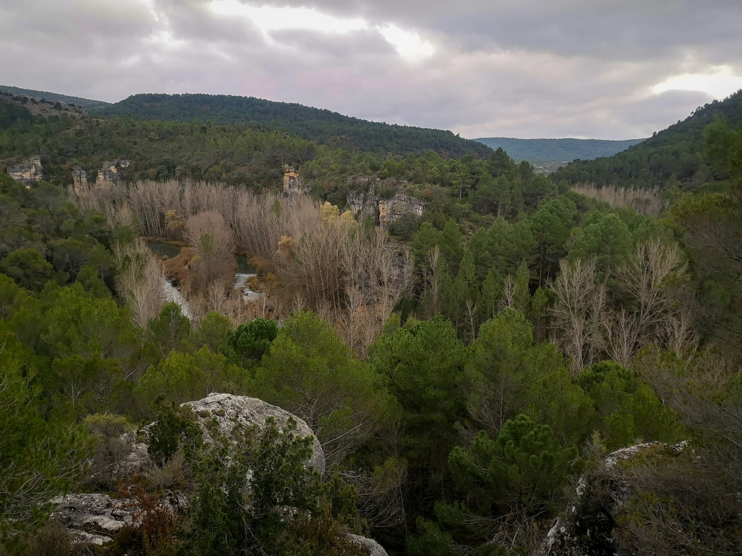We had booked two nights in the hostel at Cañamares to dodge the snow, so had a very rare restful day doing absolutely nothing. The forecast snow did not arrive but we were happy to stay put. We were still concerned about the following day’s ride, as we were going to quite a remote area, even higher than we were now. We decided on an 8am start as it was 44 miles and apart from the two day ride out of Granada, the most climbing of the trip. I sent Niall details of our route, and with quite a bit of trepidation, off we went. Within minutes we had stopped, no not snow but stunning views. The route took us through a gorge. We had mile after mile of wonderfully weird cliff formations, death defying walkways perched high above us and waterfalls below us, formed by the Tagus river. Our “let’s get there” decision was forgotten and I stood slack jawed enjoying the views and Tom took photo after photo. We were cycling through the Alto Tajo nature reserve. Famous the world over and our second Games of Thrones film set. Used in Series 6 apparently!