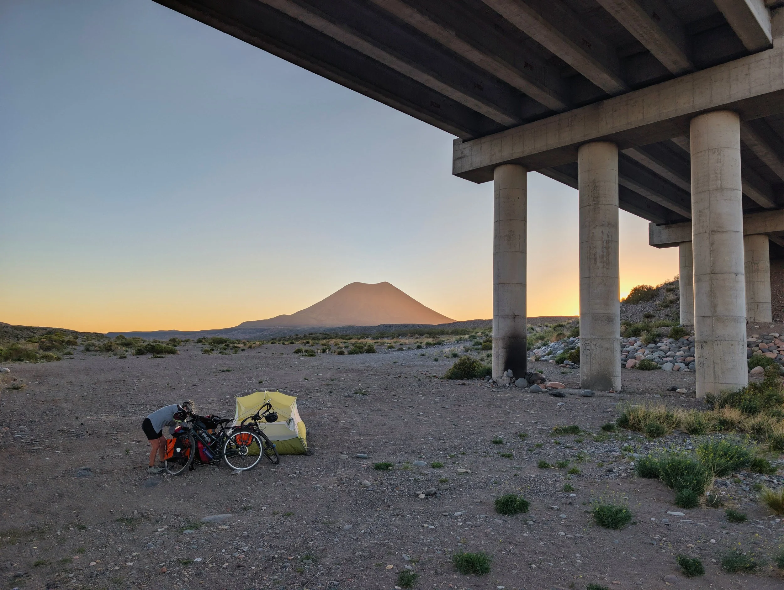 Day 3, we had managed to sleep just fine and didn't feel too bad. Low on water we decided to eat fruit and biscuits for breakfast. We had 40 miles to a cafe, starting with 16 miles uphill. The weather forecast had promised a tail wind and we got one, yeh! Unfortunately after 2 hours it swung round into a headwind and would remain that way for the rest of the day. Fortunately another couple stopped and supplied us with 2 large bottles of cold water just as we were about out, phew! Our cafe stop was at the 3,000 mile point on the Ruta 40, which luckily has become a tourist attraction, hence the cafe in the middle of nowhere. Refreshed, we returned to the road for the final 30 miles of what should have been pretty easy cycling, but that wind made it tough, 70 plus miles in the bag!