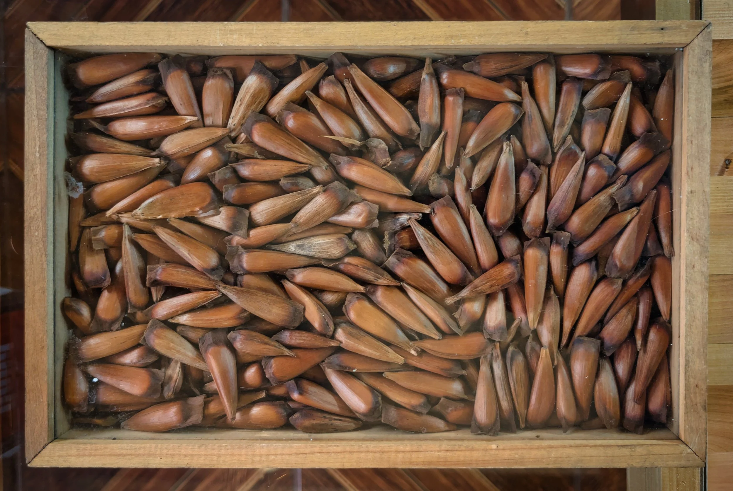 Monkey Puzzle seeds, or piñones, are edible, like large pine nuts