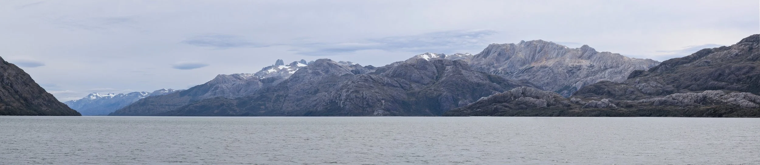 The ferry was taking us between many uninhabited islands, the mountain sides dropping straight into the water below. The hillsides were covered with trees, and as the mountains grew higher and higher, the vegetation stopped and they were topped by snow capped peaks and glaciers. We were sailing close to the Southern Patagonian Icefield and the views became more and more dramatic the further we went.