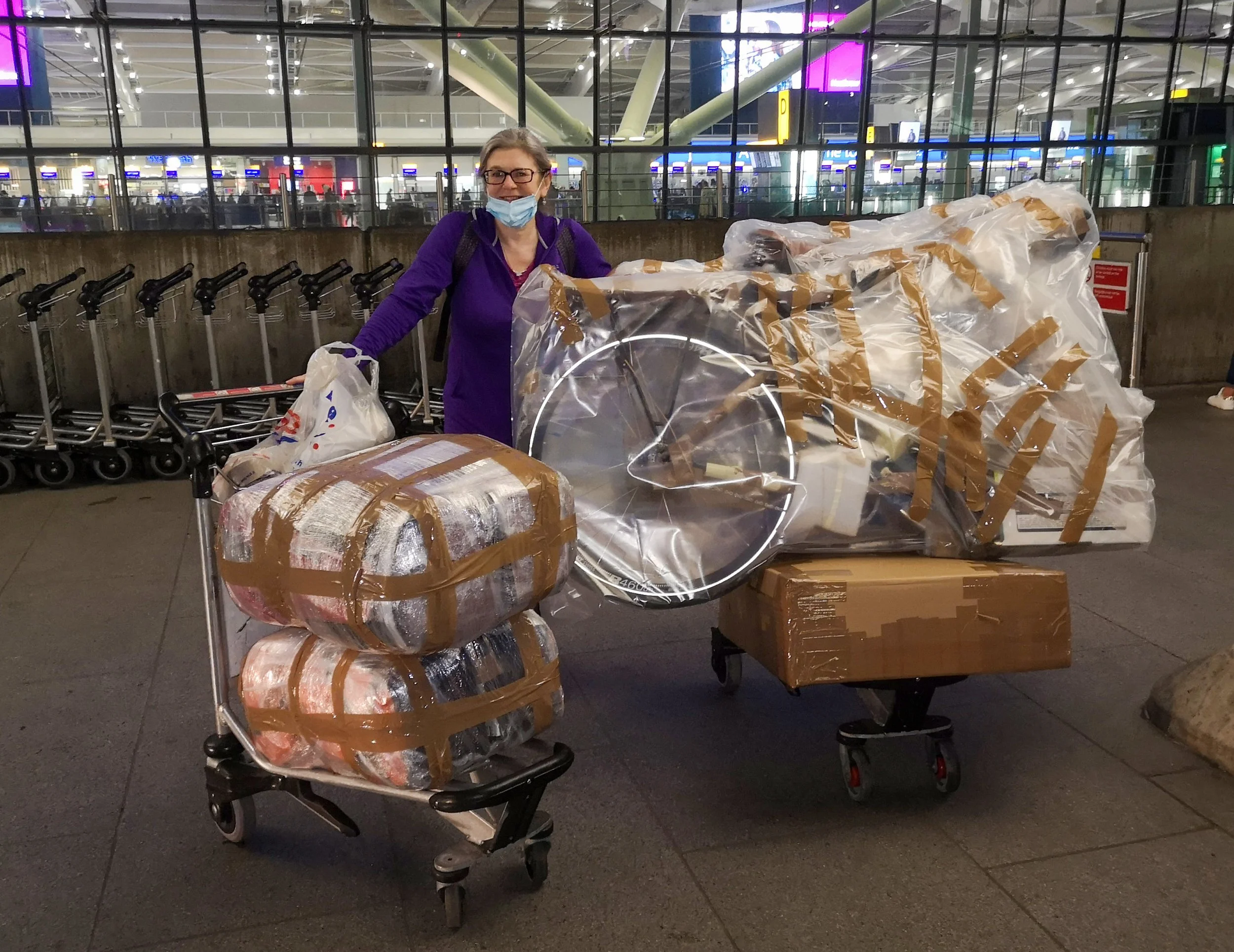 Well our day started early, up at 4am and picked up by British Airport Transfers. It wasn’t a cheap taxi at £109, but the service was top class and I would recommend them 100%. We were updated about the trip a few days before, then the day before and then an hour or so before pick up. We could even track the driver via the app. Needless to say he was on time and had our bikes, bags and boxes loaded in a jiffy. Check-in wasn’t quite so smooth. We were flying with BA, plenty of helpful staff, but although Tom had followed the instructions of BA’s website to the letter, our cleaned petrol canister was not allowed on board. Not happy bunnies. We had taken some tape just in case thank goodness. The bikes and bags caused no problems thankfully.
