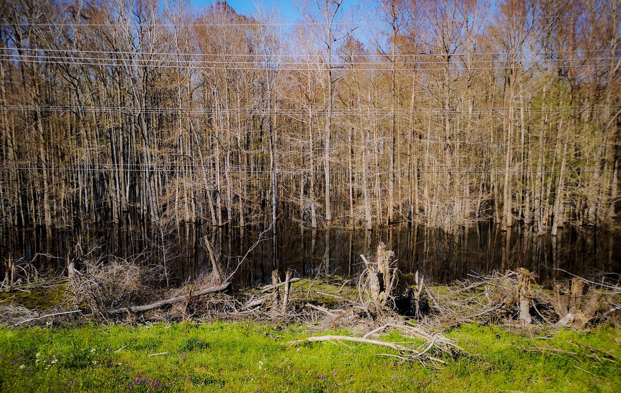 We hit the road refreshed and rested, buzzing from our time in Marksville. Five miles in Tom had yet another puncture, dear god was it ever going to end? We decided we would definitely ride an extra six miles and add in a visit to a bike shop, Red River Cyclery in Alexandria. As we were still in Louisiana they couldn’t have been more helpful. The owner spotting our slightly hungover expressions sent us off for a 2-for-1 meal of catfish whilst they looked after the bikes. It did the trick and off we went. A mile later Tom’s pedal started to make an ominous sound, instead of a quick return to the bike shop we pressed on. Five miles later the pedal fell off, oops! Still Tom pushed it back on, it squeaked madly but we hoped it would last.
