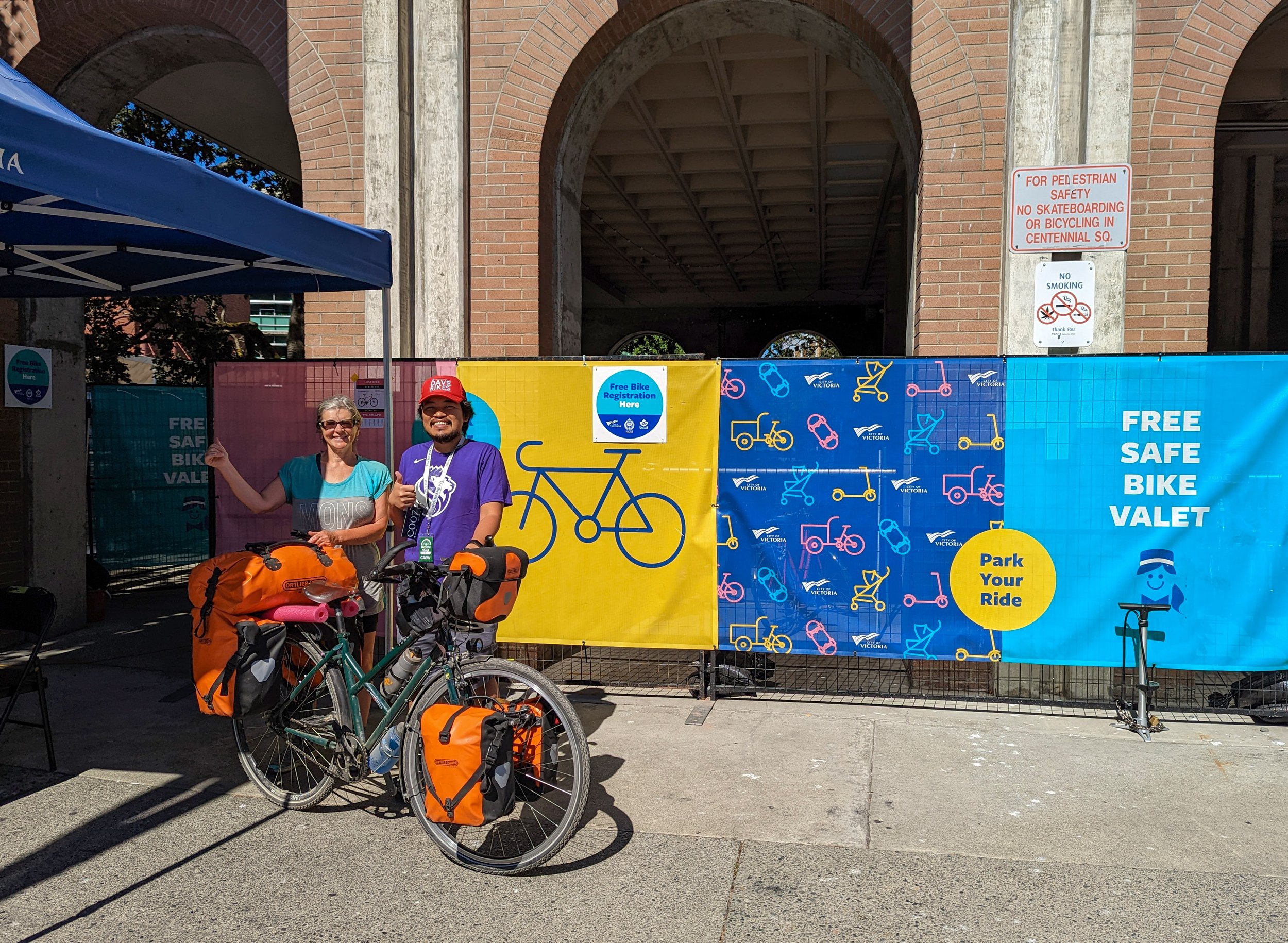 When we hit downtown, Victoria continued to excel. Free valet parking for cycles. Yes, you read that right, G of Dave’s Bikes, kindly took our cycles, assured us they would be well looked after and sent us to shop! Before we could go, I had to get out the first aid kit, our first time of the trip. Fortunately, not for us, but for a young girl who had cut herself badly on glass. My niece Gabs, a nurse, would have been proud of me!