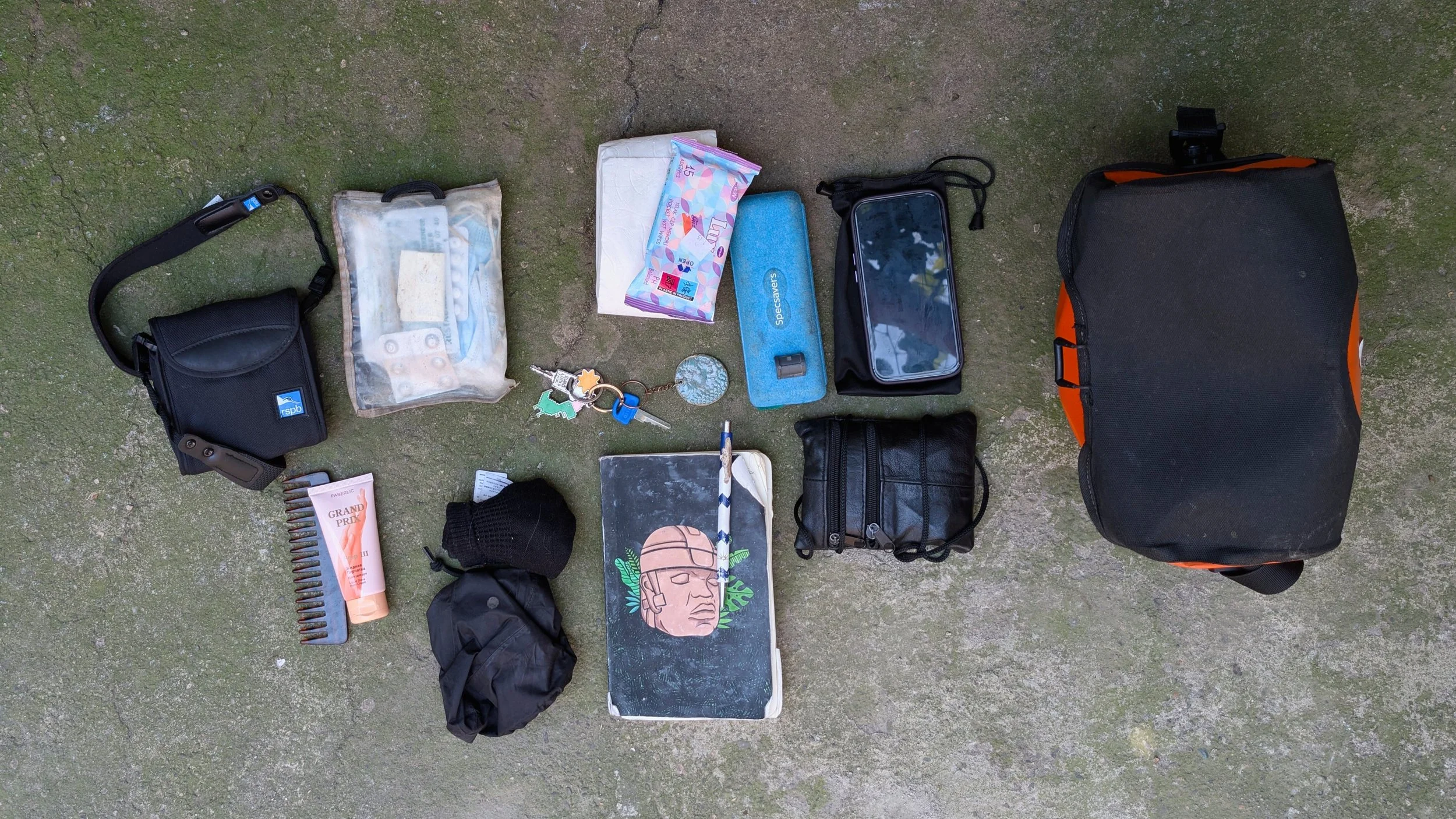 Key (to lock Ortlieb bag when left on the bike), Brooks saddle cover, wool gloves (to keep my hands warm on long long downhills)